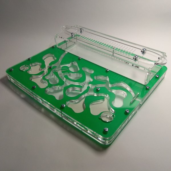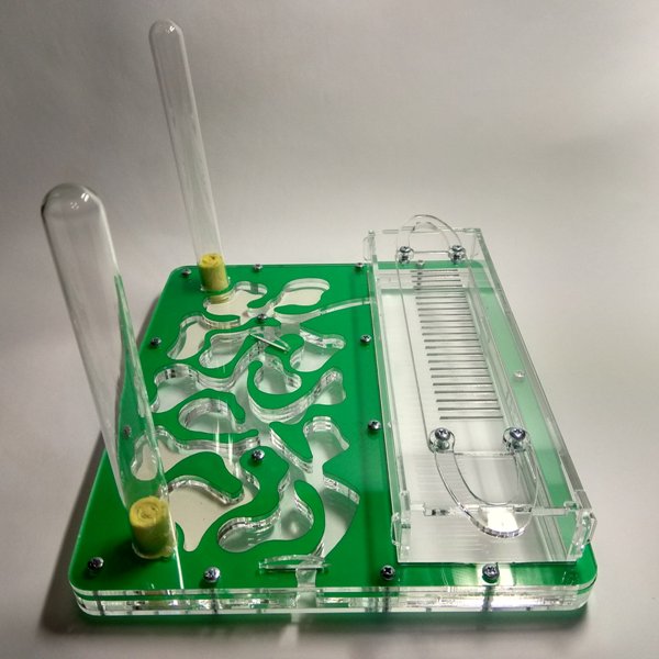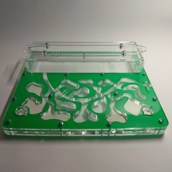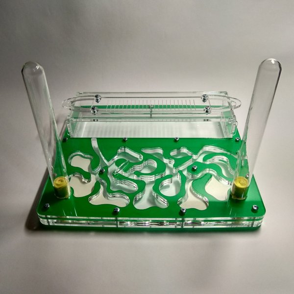 Муравьиная ферма Стандарт Зеленый. Формикарий подходит для средней муравьиной колонии. Очень удобно наблюдать за муравьями за счёт горизонтального расположения системы ходов. Вместимость особей вида Messor Structor (муравьи-жнецы) ~ до 1200.Размер 220х194